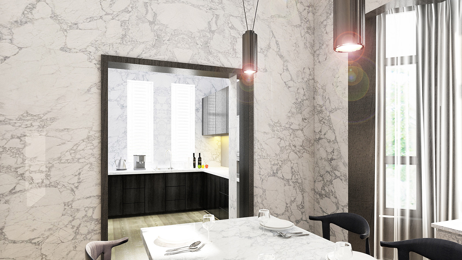 For collections from the same block, vein continuity and bookmatched designs create a harmonious visual effect.