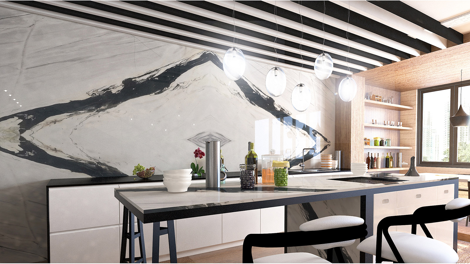 Color and Texture: Characterized by its crisp white base and delicate gray veins, offering a harmonious and sophisticated appearance.
