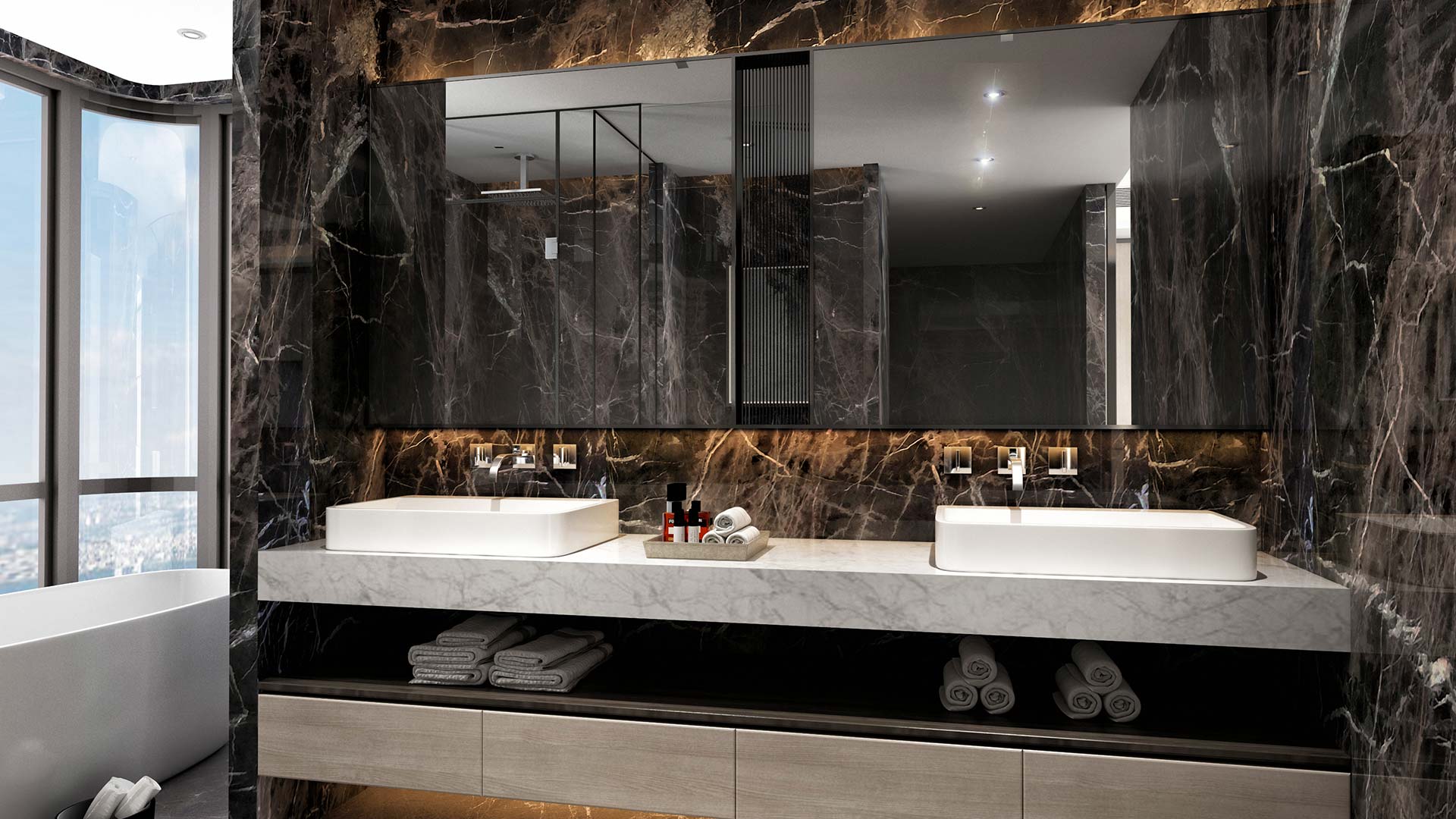 Bruno Perla Marble is well-suited for wall claddings, TV units, bathroom vanities, feature walls, and flooring, offering a sophisticated touch to both modern and classic interiors.