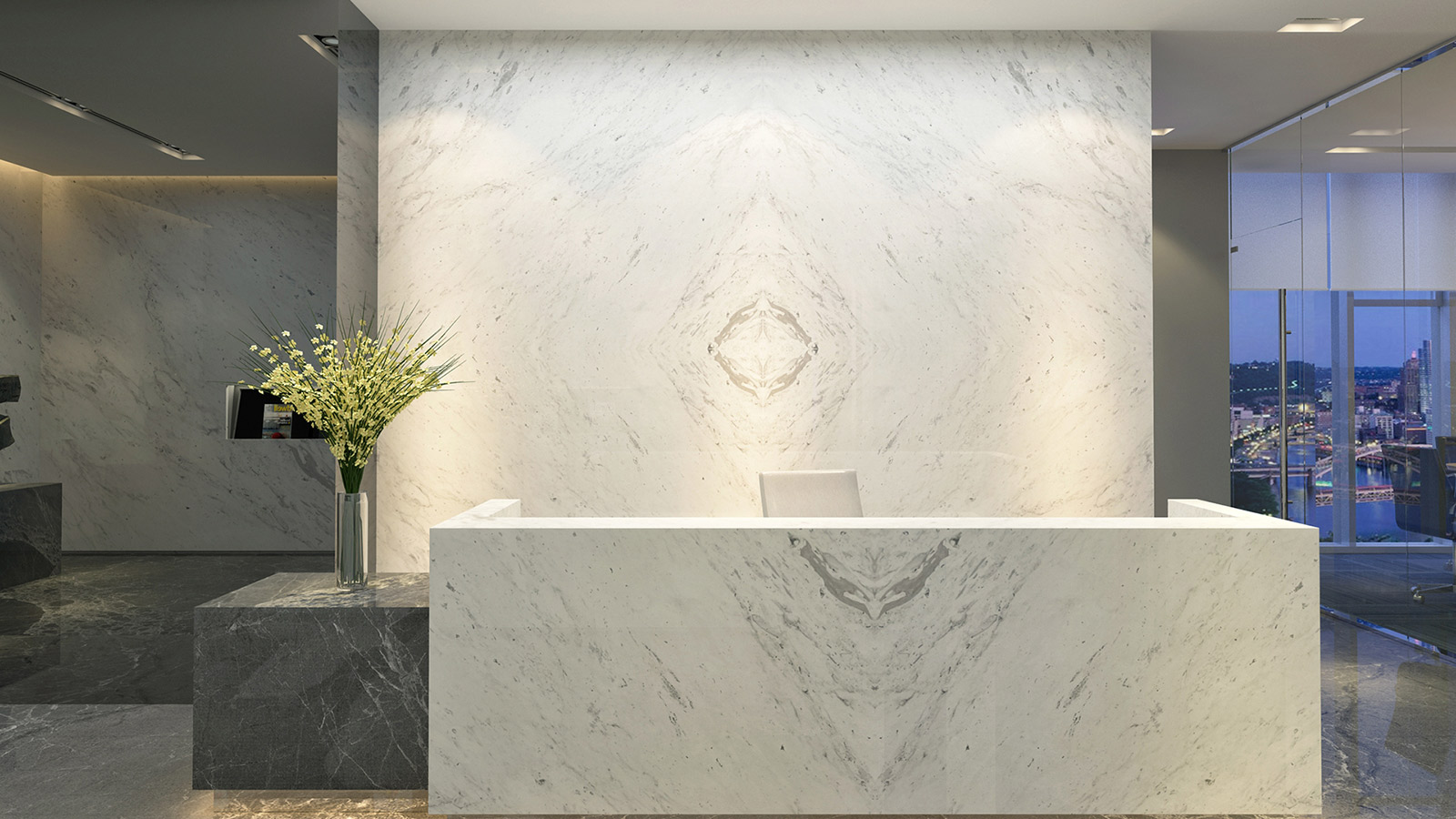- Veining and Texture: The gentle interplay of gray and beige veins across a bright white base creates a harmonious and refined appearance, adding character and depth to each slab.