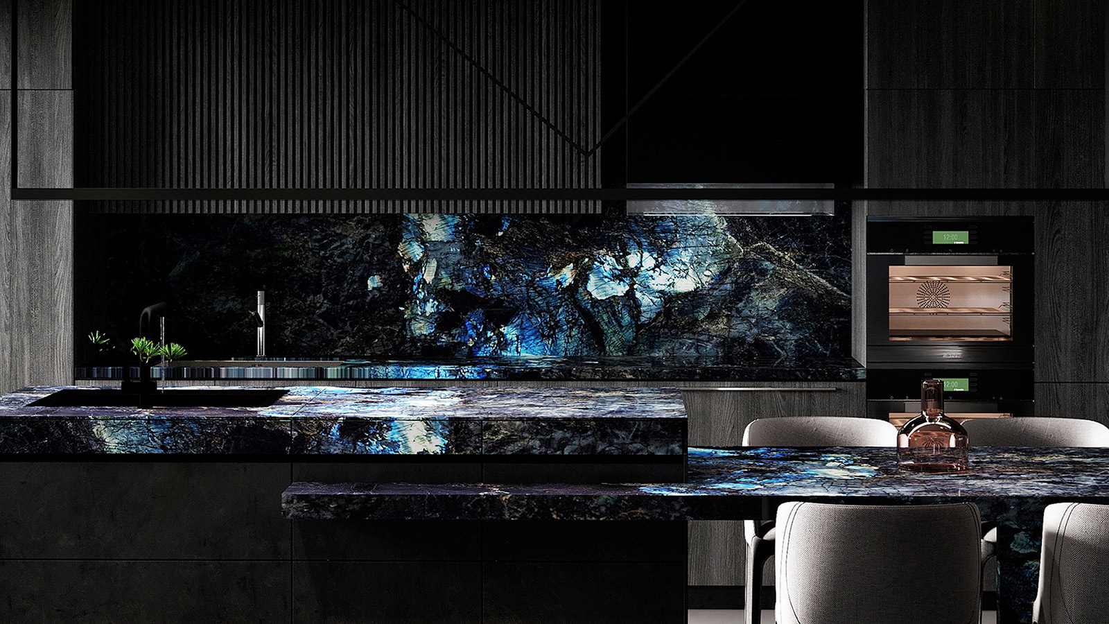 Lemurian Blue Labradorite is ideal for wall claddings, TV units, bathroom vanities, feature walls, flooring, and kitchen countertops. Its mesmerizing color reflections make it a standout choice for spaces that demand a bold aesthetic.