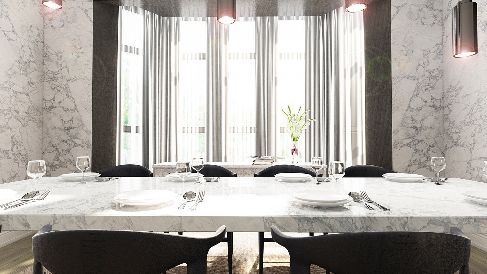For collections from the same block, vein continuity and bookmatched designs create a harmonious visual effect.