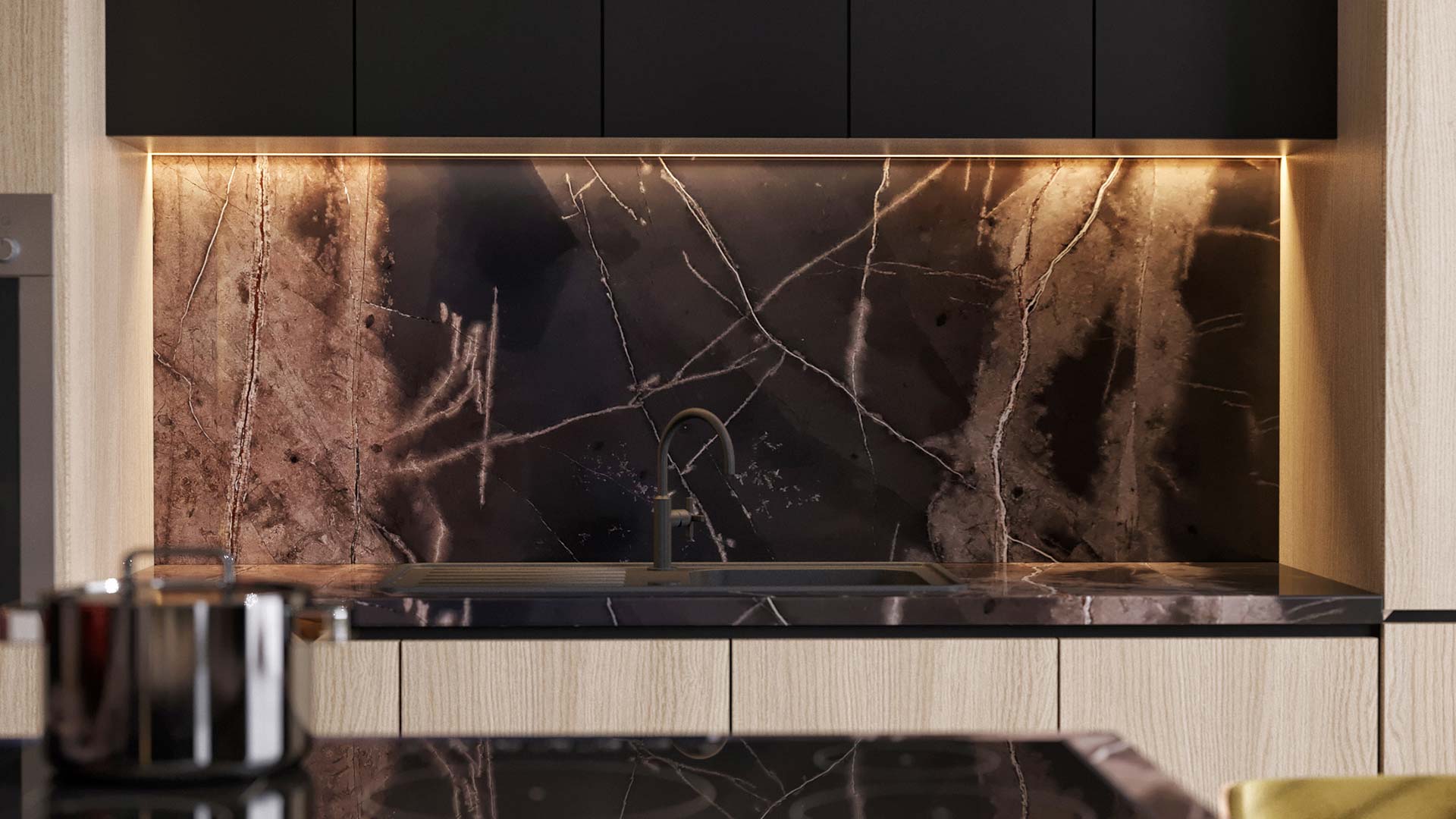 Bronze Antique Marble is well-suited for wall claddings, TV units, bathroom vanities, feature walls, and flooring, adding a refined and artistic touch to both modern and classic interiors.