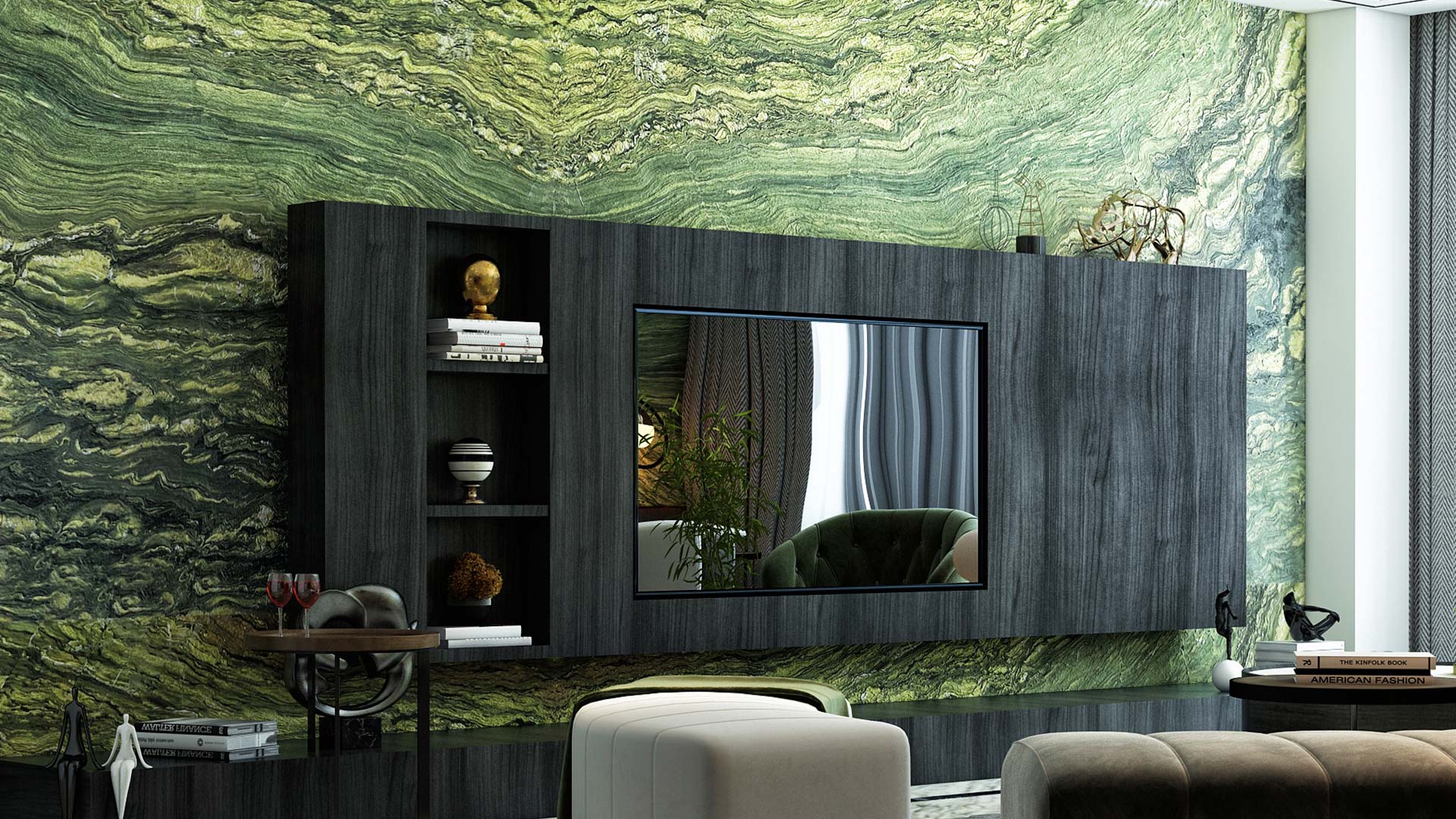 Green Fusion Marble is ideal for wall claddings, TV units, bathroom vanities, feature walls, and flooring. Its dynamic visual appeal makes it a preferred material for luxurious and artistic design concepts.