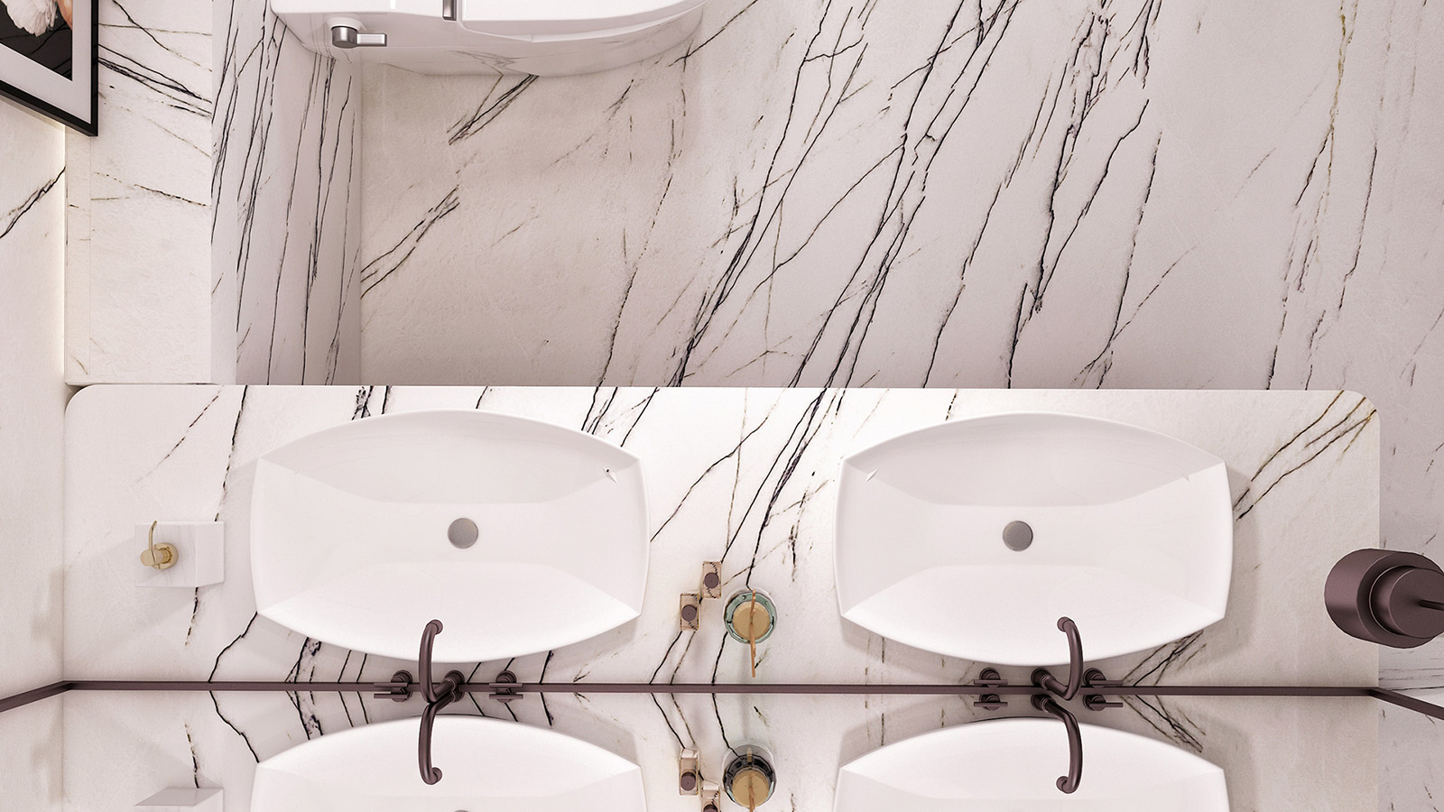 Thanks to its dramatic veining and balanced structure, this marble is commonly used in: